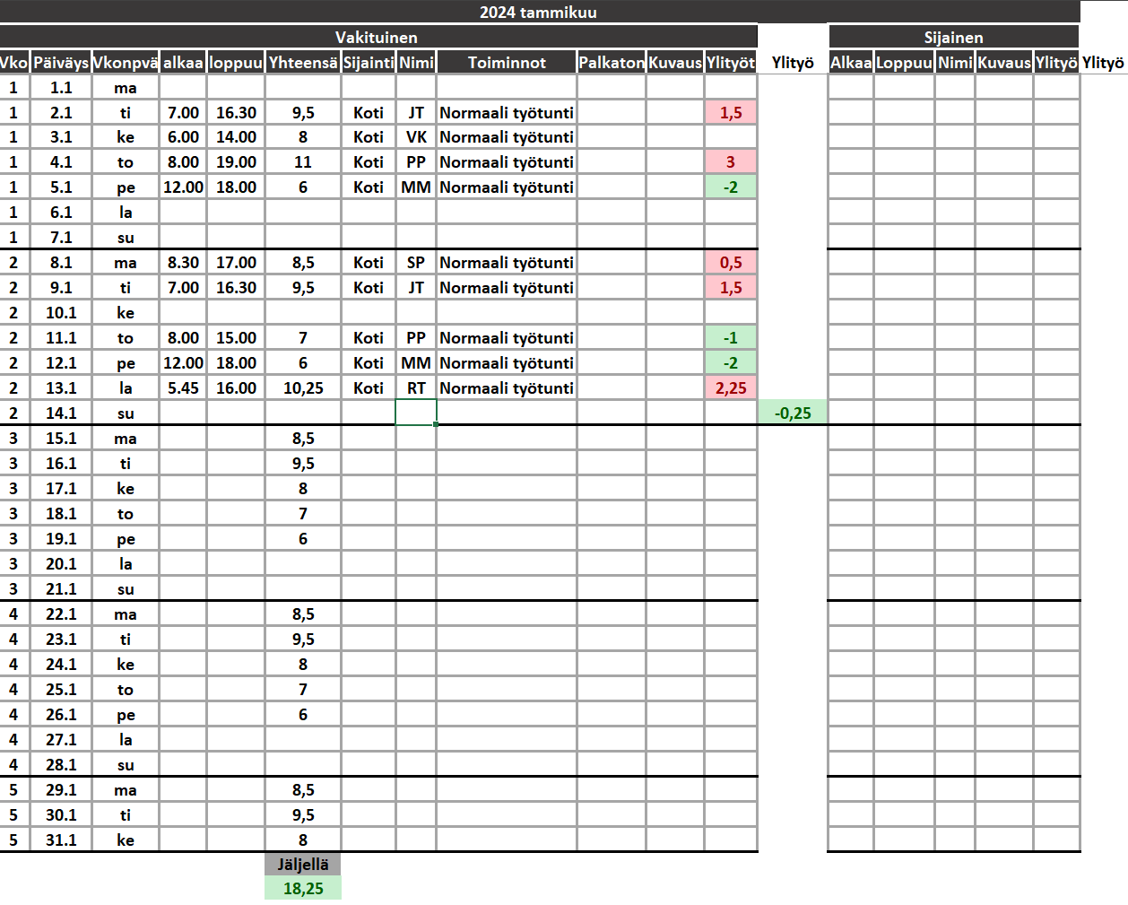 Excel työvuorolista + aktivointikoodi versiolle 0
